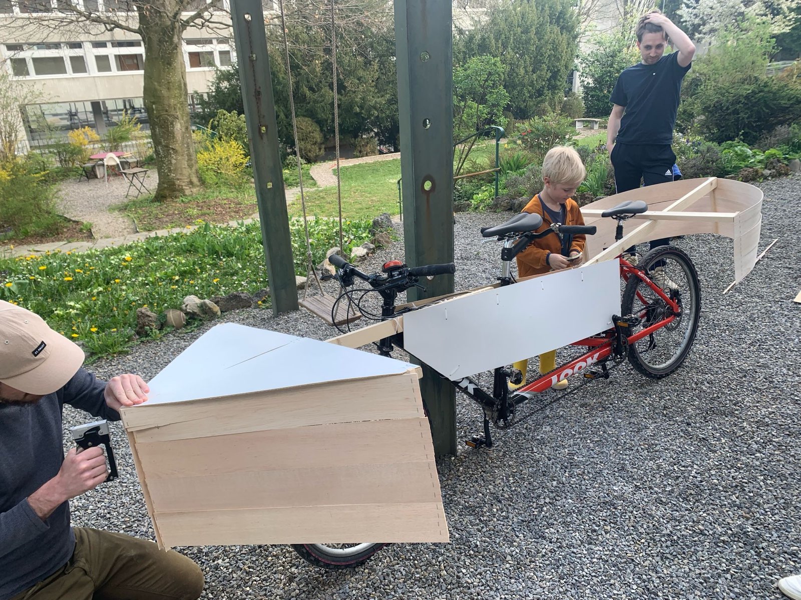 Nous avons déjà décoré notre tandem et l’avons transformé en navire roulant qui portera le nom de « Gambarque »